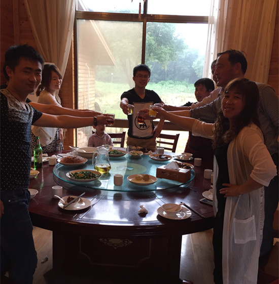逛了一上午,眾男神女神的肚子早已開始了“青蛙叫”了,即便再餓,大家也不忘吃飯前在農(nóng)家樂的一個合影!