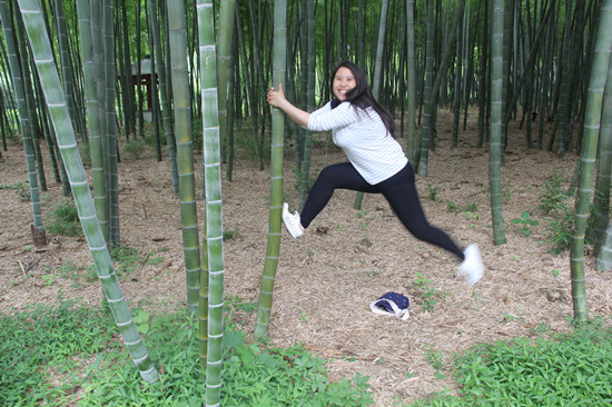 這個妹紙夠頑皮哦,說實在的,為了拍照而做出的這種高難度的動作,小編自己估計也是難以做到吧!